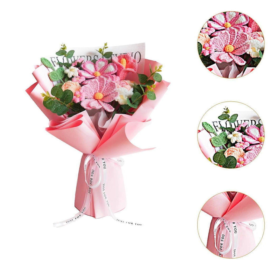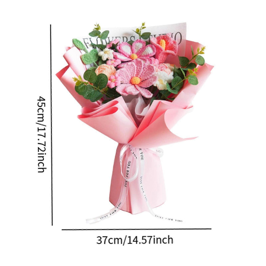 (Pink) 17.7inch Crochet Flowers Knitted Bouquet Handmade for Best Friend Girlfriend Red