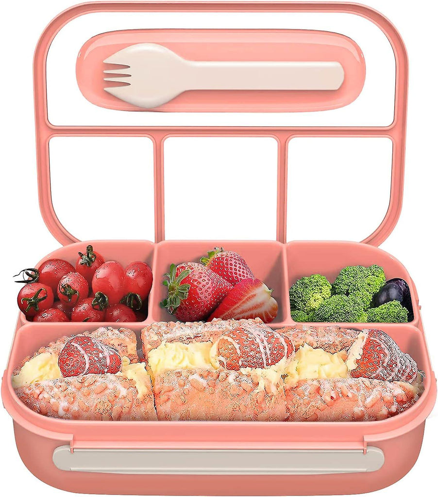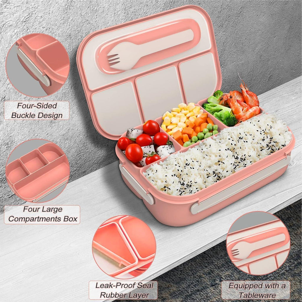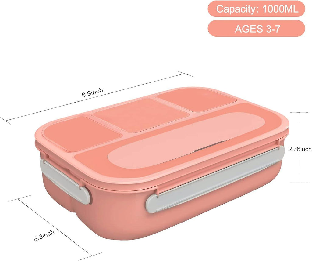 (pink) Bento Box For Adults, Bento Lunch Box For Kids With 4 Compartments And Spoon, 1000ml Leakproof Food Storage Box For School, Work And Travel, Bpa Free,