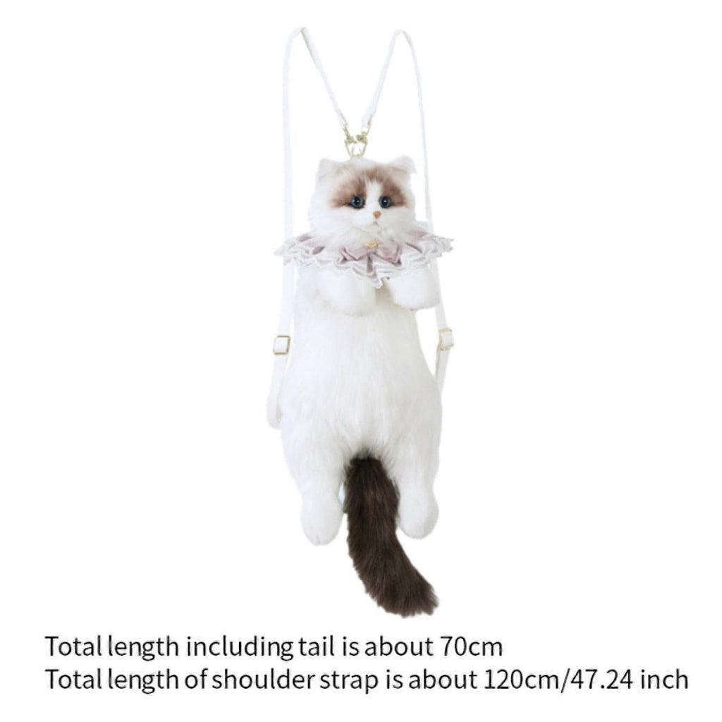Description: Unique and Realistic Design: Our stuffed cat backpack is designed to resemble a lifelike cat, cute and adorable, making it suitable for girls and women of all agesQuality Material: Made from soft stuffed material, this cat backpack is soft and comfortable to carry around. It's great for adding a touch to your everyday outfitsSpacious and Practical: The stuffed cat backpack is with total length including tail about 70 cm/27.56 inch and total length of shoulder strap about 120 cm/47.24 inchWide Occasions: The cute cat backpack offers ample storage space for your essentials like phone, sunscreen, lipstick and more. Widely suitable for street, travel, party, dating, shopping, etcGreat Gift: The stuffed kitten backpack makes a heartwarming surprise for families and friends on birthdays, anniversaries, holidays, festivals, etc Specification: Material: Stuffed Size Chart: Total Length Including Tail: About 70 cm/27.56 inchTotal Length Of Shoulder Strap: About 120 cm/47.24 inch Package Includes: 1 Backpack Note: Please allow slightly errors 1-2cm differences due to manual measurement.