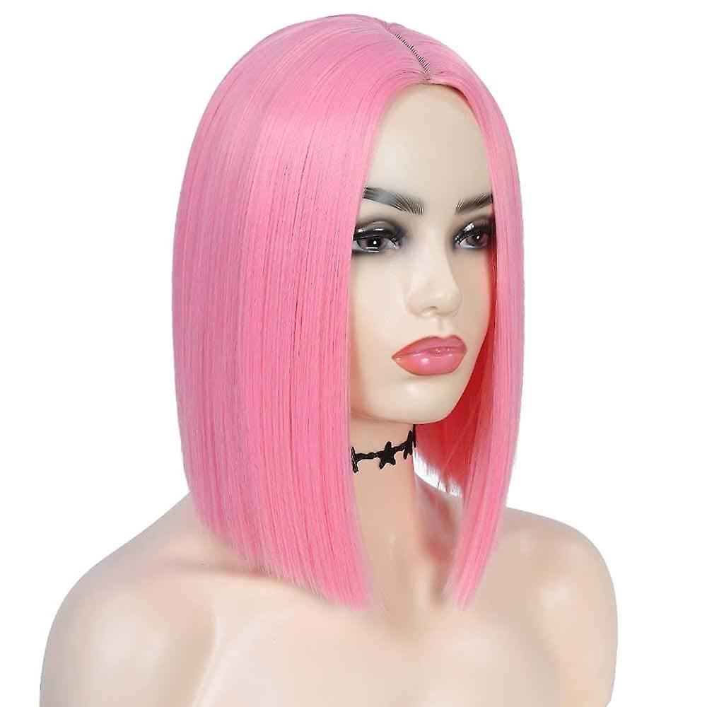 (pink) Red Women's Short Straight Hair Women's Costume Wig Medium Section Shoulder Length Heat Resistant Colorful Wavy Bob Wig 1 Piece (yellow)