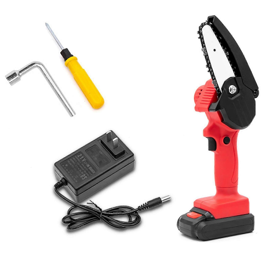 Features:1. Led light, safety switch, safety sawdust shield2. EASY TO OPERATE WITH OHE HAND. The machine is light and compact and can be operated with one hand, which is very convenient3. Large capacity battery, rechargeable, for long time use.4. High hardness quenched chain saw.5. Perfect for branch cutting, wood cutting, for logging, woodworking.Notice:1. Actual color may be slightly different from the image due to different monitor and light effect. Specification:No-load speed: 3000 (rpm)Guide length: 4 inchesBattery capacity: 1500mAh/pcsincludes:Choice 1:1 x Electric Chain Saw1 x battery1 x charger1 x screwdriver1 x wrenchChoice 2:1 x Electric Chain Saw2 x battery1 x charger1 x screwdriver1 x wrenchChoice 3:1 x chainChoice 4:1 x Guide Plate