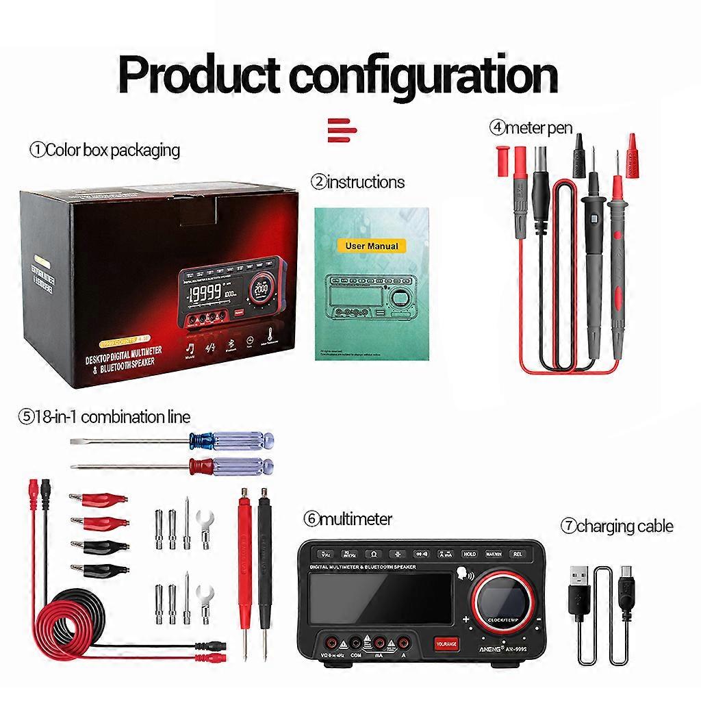 Features: 1. Strong praticability, it can be used in different premises, for instance, power substation, voltage detection, electronic circuit manitenance. 2. Multi-function combination line meet different needs. 3. Multiple measurement functions. It can test voltage, diode, resistance, buzzer, capacitance. 4. 360 surrounding sound quality, double speakers, shock, feel different effects 5. Multifunctional Home Little Helper Specifications: Material: ABS Size: Approx. 200x105x135mm/7.87x4.13x5.31inch Note: 1.Please allow 0-1cm error due to manual measurement. pls make sure you do not mind before you place order. 2.Due to the difference between different monitors, the picture may not reflect the actual color of the item. Thank you! Package includes: 1 Set Digital Multimeter