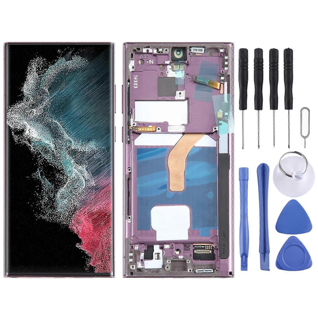 (Purple) For Samsung Galaxy S22 Ultra 5G SM-S908B EU Edition 6.78 inch OLED LCD Screen Digitizer Full Assembly with Frame