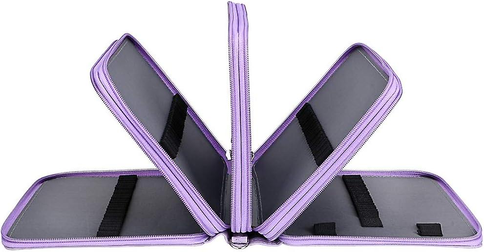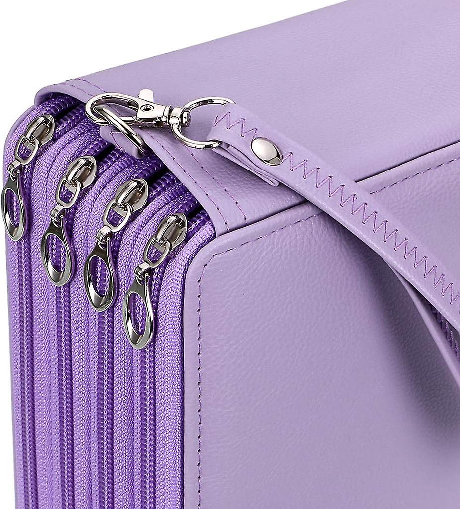 (Purple) Leather 200 Inserts Extra Large Capacity Multi-layer Student Crayon Case Storage Bag Bag Holder Stationery Organizer (without Pens) Purple