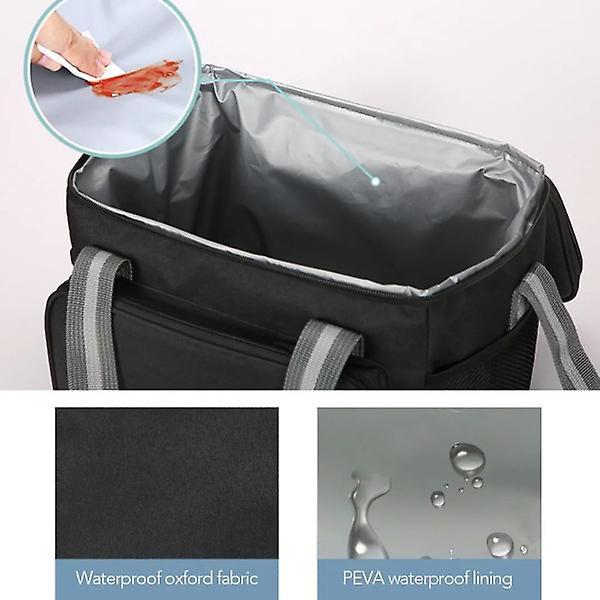 Product description: Heat insulation: The lunch bag is made of heat-insulating material that keeps food and drinks cool or warm for over 5 hours can. In addition, the lining is made of food-safe PEVA film, so you can place food directly into the bag without worry. The integrated EPE foam provides excellent protection for your containers, food and drinks. Large Capacity: Size: 31 x 19 x 23 cm. With a maximum capacity of 15 liters, the adult lunch bag is spacious enough to store your lunch essentials such as sandwiches, salads, snacks, drinks, fruits, etc. Suitable for office, work, picnic, beach, travel. Leak-proof and waterproof: The outside of the lunch cooler bag is made of waterproof and stain-resistant 600D Oxford fabric, which is durable, waterproof and easy to clean. Even when filled with water and ice, it holds fruits and drinks well and doesn't leak at all. Durable Material: The lining of the insulated lunch bag is made of PEVA film, which is stain and abrasion resistant and does not melt easily when the lunch box is filled with hot food. High-quality, robust zippers minimize the risk of breakage. Perfect for storing food in the office and at picnics. Practical and Portable: The lid of this refrigerated lunch bag opens with a sturdy two-way zipper, allowing you to place the lunch container in the bag and remove it vertically from the bag . Prevents liquid from leaking out of the container and contaminating the inside of the bag. Sturdy handles and shoulder straps make carrying easier. Additionally, additional front and side pockets provide space for small items such as keys and earphones. Product Features: Made of waterproof Oxford fabric and waterproof PEVA lining, durable and easy to clean. Insulation can keep food warm and cool with a few ice cubes. 15L large capacity and multiple pockets for your needs. Nylon and top handle for comfortable use. Great choice for camping, hiking, fishing, picnics, beaches, barbecues, parties. Product specification attributes: Material: Oxford + EPE foam + PEVACapacity: 15L< /li> Size: 23 * 31 * 19 cm Color: Black Packing list: 1 piece thermal insulation bag