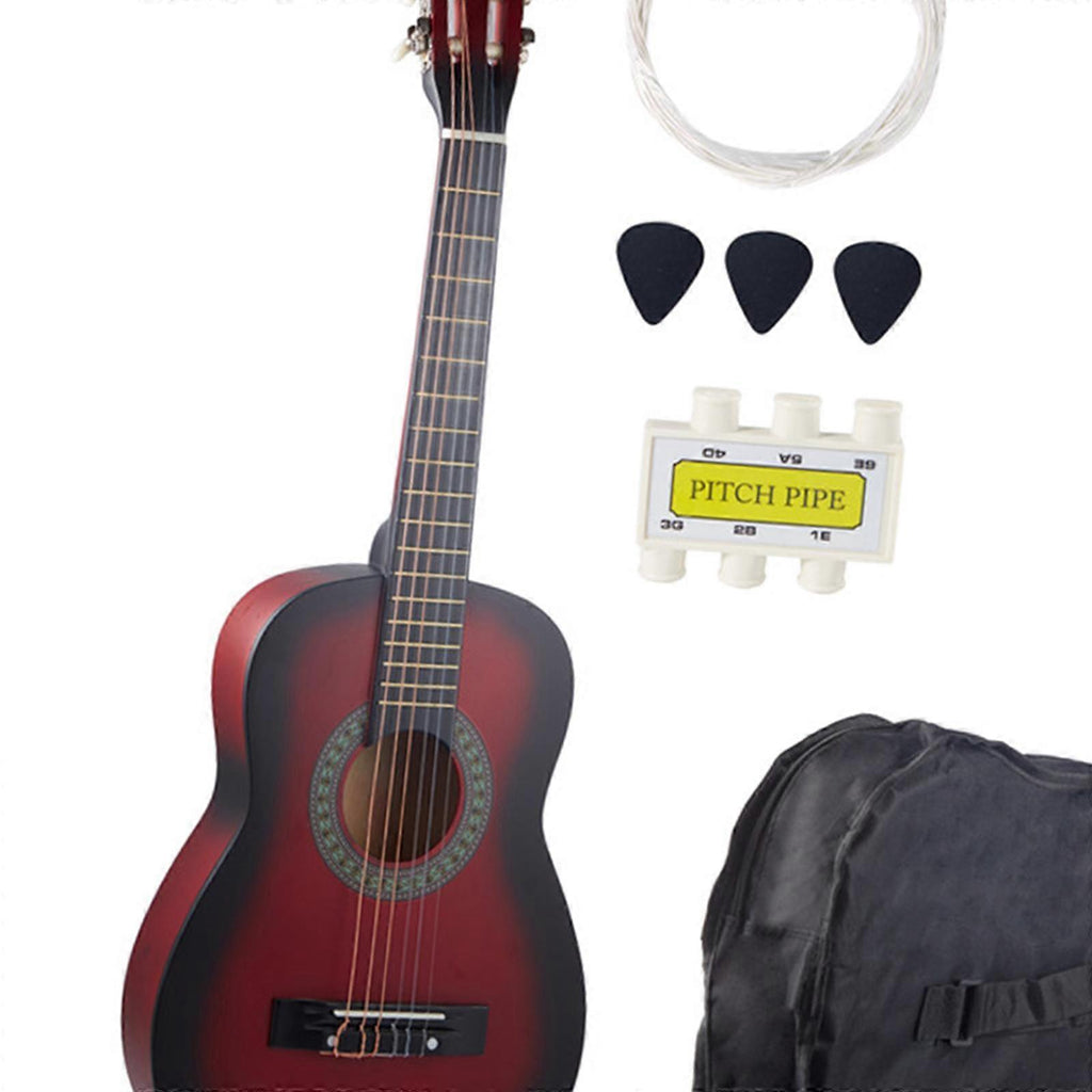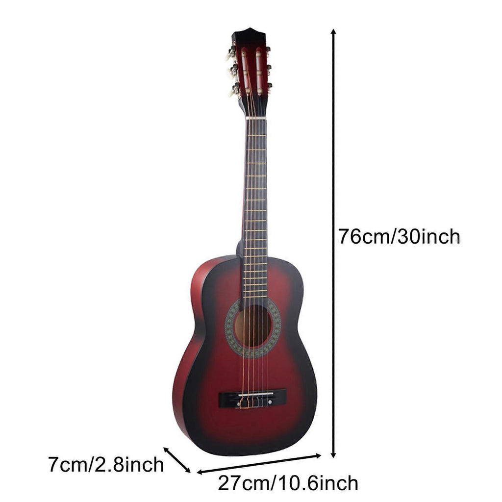 Description: Material: This 30 inch classical guitar is? made of basswood panels, long term use .Ideal Gift: This guitar set is the instrument gift for boys, girls, students, friends, children and adults who want to play music. It can serve as a birthday/holiday gift?Portable:kids guitar child guitar? for Kids, portable and light weight, easy to carry out.Design: Six string guitar beginner music instrument for kids adults beginners educational learning guitarPackage Includes:?1 set wood guitar with case and accessories Specification: Material: wood Size Chart: 30inch? ? Package Includes: 1 Set?Beginner Acoustic Guitar