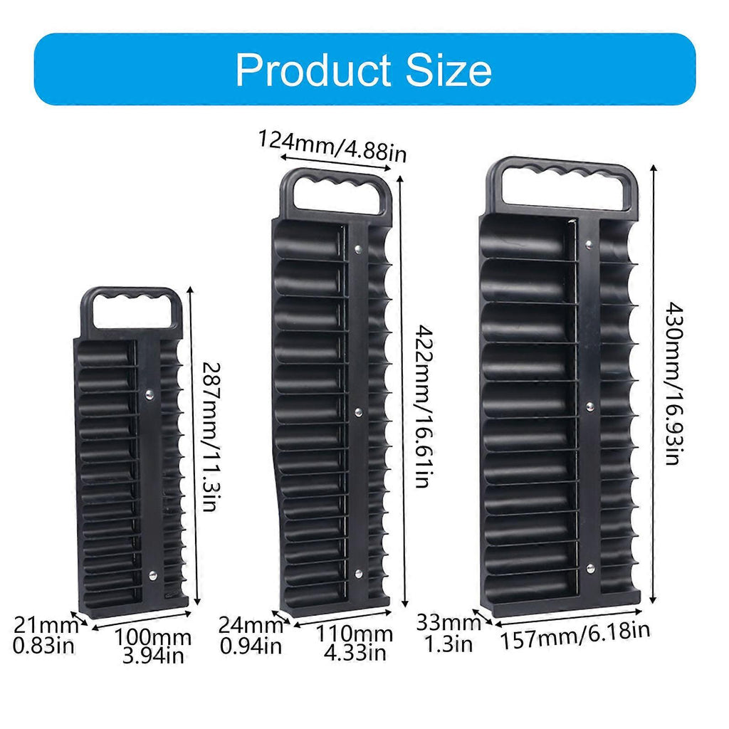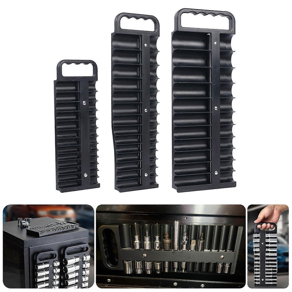Features: Magnetic Sockets Organizers Set, hold up to 76 sockets, ensuring a tidy and efficient work space. Featuring a sturdy back magnetic design, this Sockets holder can be effortlessly stick to any ferrous surfaces, providing easy access and stability for both shallow and deep sockets. Suitable for professional technicians, DIY enthusiasts, and home users... Perfect for use in workshops, garages, and home tool room, it allows you to quickly locate and get the tool you need, boosting productivity. Sockets not included. Specifications: Component:Plastic Size1: Approx.430mm/16.93inch Size2: Approx.422mm/16.61inch Size3: Approx.287mm/11.29inch Color: 2 Option Quantity: 3Pcs Package Includes: 3Pcs Magnetic Sockets Holder note: 1.Please allow 1-2cm errors due to manual measurement, make sure that you do not mind before you order. 2.Due to the differences between different monitors, the picture may not reflect the actual color