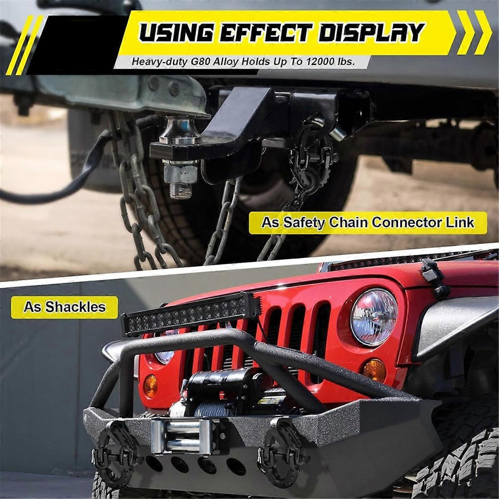 [Extreme Durability with Impressive Strength] The hammerlock coupling link, crafted from steel, boasts a sturdy and anti-wear structure that is immune to corrosion. This ensures long-lasting performance even in harsh conditions, with a remarkable maximum load capacity of 12,000 pounds and an outstanding breaking strength of up to 47,000 pounds [Revolutionary Installation Simplified] Our clever pin-and-clip system ensures both safety and hassle-free installation and removal. No more installation headaches! tow chain connector is so straightforward that anyone can easily insert the fixing pin and install it [Isolators Providing Protection] 1 set trailet safety chain connector link. along with the essentials of a connecting link, connector, drive pin, and cotter pins, our set also includes detachable isolators to eliminate noise and scratches [Versatile Application] Suitable for a wide range of vehicles like TRACTOR, FORKLIFT, RV, UTV, TRUCKS, TRAILERS and SUV, tow hitch hammerlock coupling link is a versatile choice. It's also ideal for applications in trailer, port transportation, hoisting, sling connection, metallurgy, and more Colour:Black/Red Material:steel Package Contents: 2 x Safety Chain Connector Link Only the above package content, other products are not included. Note: Light reflection and different displays may cause the color of the item in the picture a little different from the real thing. The measurement allowed error is +/- 1-3cm.