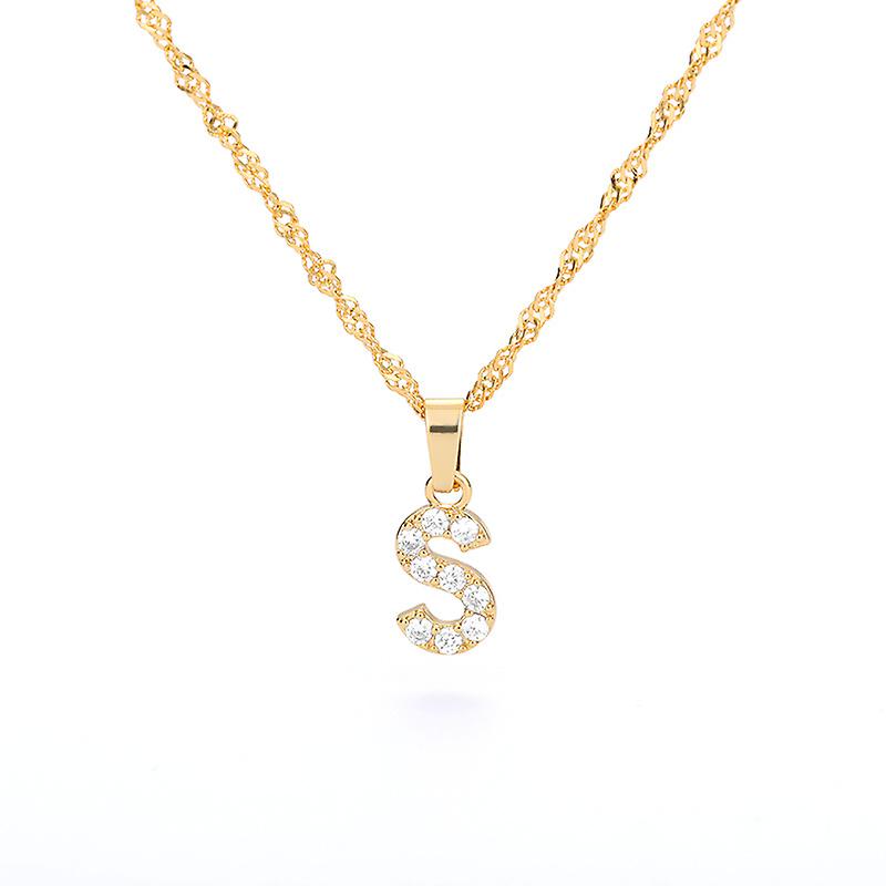 (S) Gold Zircon Letter Pendant Stainless Steel Chain 18k Gold Plated 26 Letter Necklacea