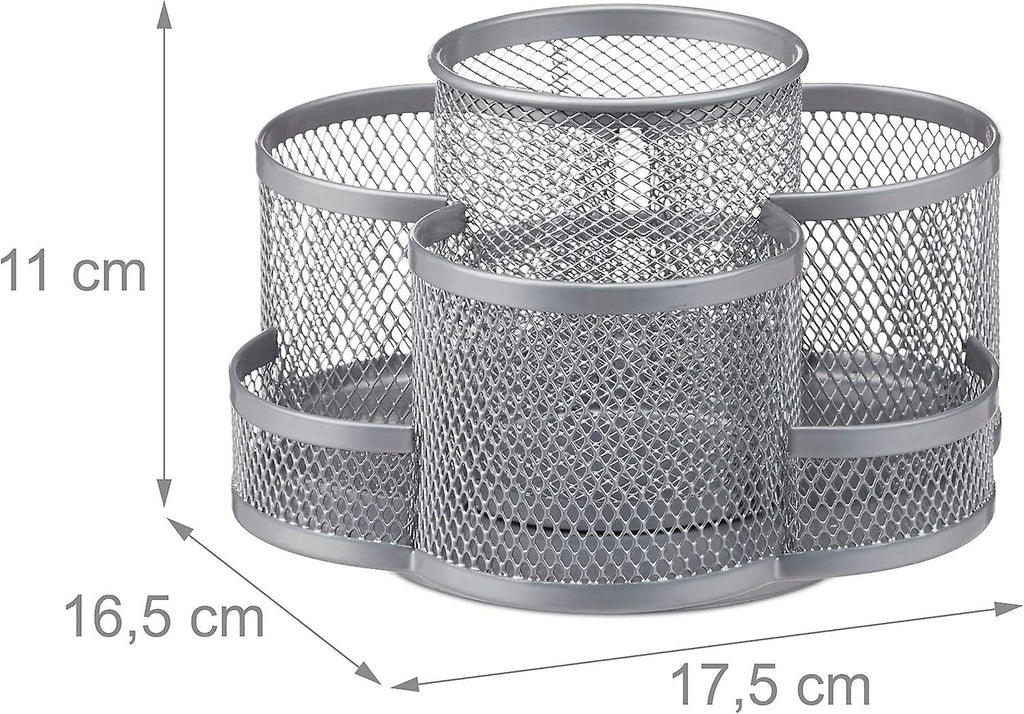 describe: Cleaning: Clutter on the desk is water - small pen clips help with organization in the office Many compartments: The black pencil case has a total of seven compartments - plenty of space for pencils, brushes, scissors and keys - small compartments are perfect for nails and erasers FUNCTIONAL DESIGN: EASY TO CLOSE CLEANING - The modern designed metal pen holder is built to last yet is durable Rotate: Rotate the pen holder to instantly find the stationery you are looking for Round and scratch-resistant: Overall size: approx. 11 x 17.5 x 16.5 cm storage box with rubber base to protect the table from scratches