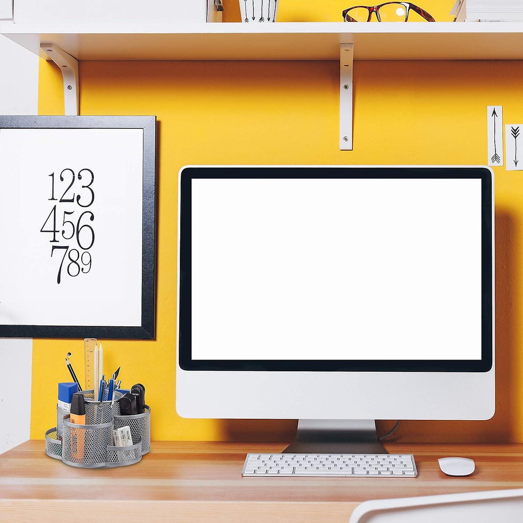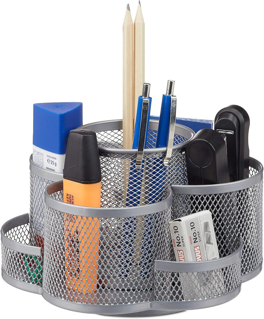 (silver) Desk Pen Holder 7 Compartments Rotating Round School Supplies 1 Piece (plum Plain Silver)