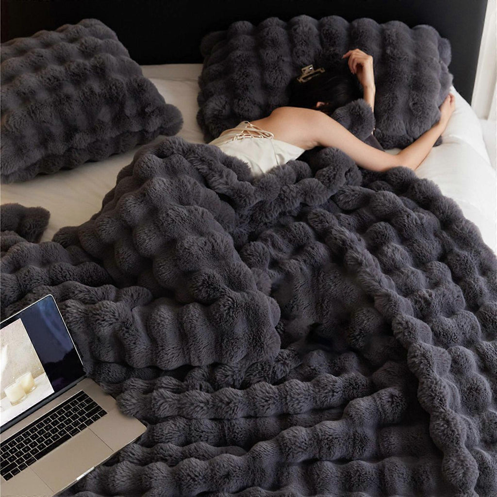 (Sky Blue) Faux Furry Soft Blanket for Winter Faux Furry Sofa Bed Throw Soft and Warm Comfort Bedspreads Plushes Blankets Sky Blue