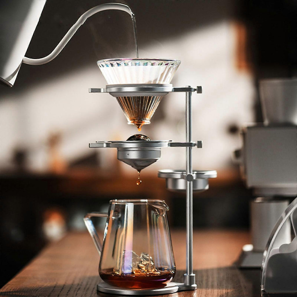 (Space Silver) All Metal Cold Brews Coffee Accessories Set Feature Removable Ice Spheres Stand And Multiple Angles Dripping Rack Space Silver