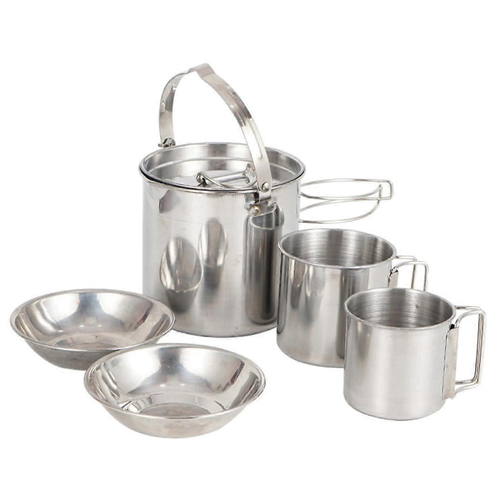 Stainless Steel Camping Cookware Set with Lid, Bowl, Cutlery