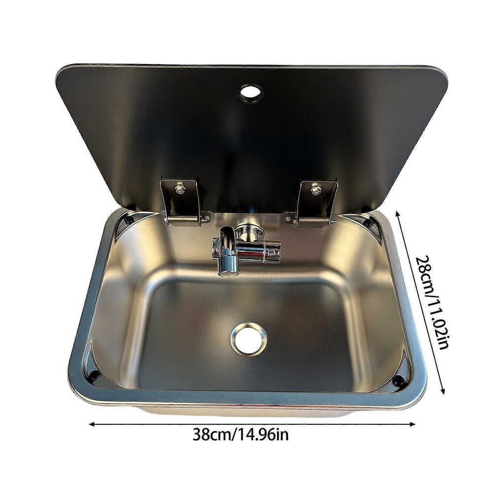 Features: The 17Inch Undermount Campers Bar Kitchen Sink is single bowl stainless steel wash basins, designs with foldable glass lid covers to maximizes space efficiency in small area like Campers, boats. Crafted from stainless steel, this sink features heat resistant glass lid, ensuring durability and easy maintenances while adding modern touch to any setting. For enthusiasts, this sink caters to those who need washing facilities, including Campers owners, boaters, and camping aficionados. Perfectly suited for installation in Campers kitchens, yacht decks, or even BBQ setups, this sink provide convenient access to water and cleaning facilities in limited space. With its noise reducing designs and installation process, this sink not only enhances functionality but also elevates the aesthetic appeal of any small kitchen or bar area. Specifications: Component: Stainless Steel, Glass Color: Silver Size: 42x37x15cm/16.54x14.57x5.91inch, 38x28x15cm/14.96x11.02x5.91inch Package Includes: 1pc Campers Kitchen Sink note: 1.Please allow 1-2cm errors due to manual measurement, making sure that you will not mind before order. 2.Due to the differences between different monitors, the picture may not reflect the actual color.