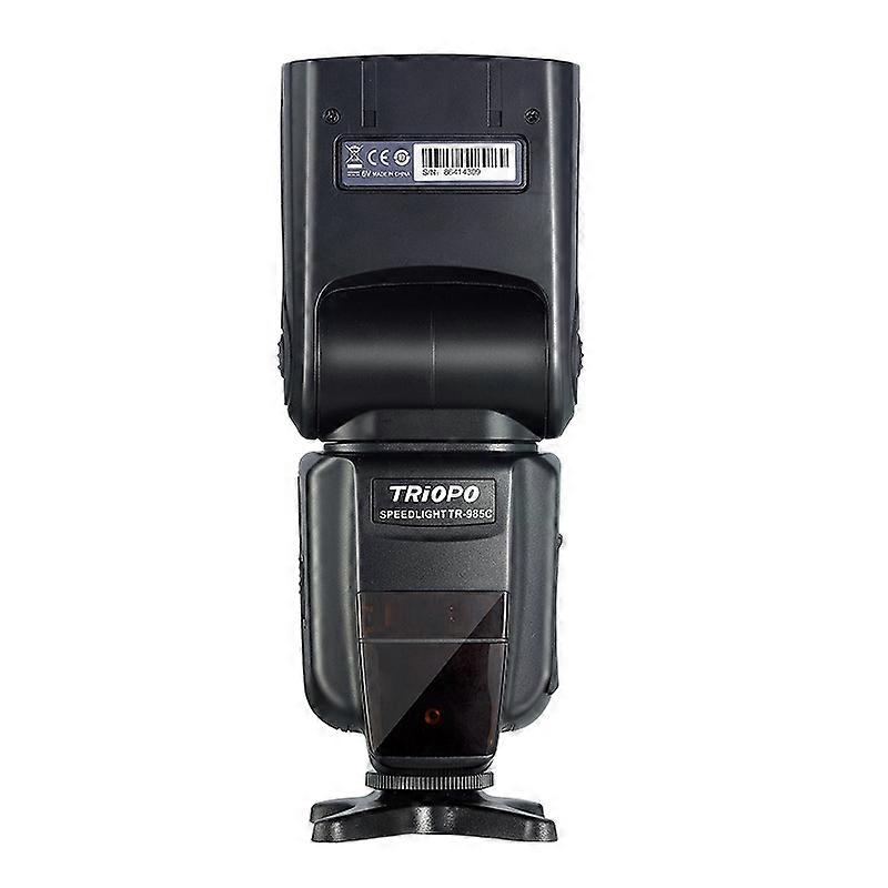 Triopo TR-985 TTL High Speed Flash Speedlite for DSLR Cameras Canon Edition About the product 1. High performance, high compatibility, high-power flash output 2. 2.9 seconds recycle time with full output, 4-5 seconds without using new battery 3. From 1128 to 11, 8 stalls to lose, each stall have two fine-tuning compensation 4. High-speed sync up to 18000th of a second 5. TTL auto-metering, the flash automatically adjust light output 6. Rear-curtain sync and stroboscopicmulti flash control 7. Raster AF assist lamp 8. Support red-eye reduction flash mode 9. Color screen for different flash modes, easy to distinguish 10. Additional Functions: Voice prompt, custom function, power save mode, overheating protection, automatic save function Package include 1 * TR-985 Speedlite 1 * Soft Case 1 * Mini Stand 1 * User Manual Compatible with Canon EOS 700DT5i 650DT4i 600DT3i 1100DT3 550DT2i 500DT1i 100DSL1 400DXTi 450DXSi 300DDigital Rebel 20D 30D 60D 5D Mark III 5D Mark II and All Other Canon DSLR Cameras