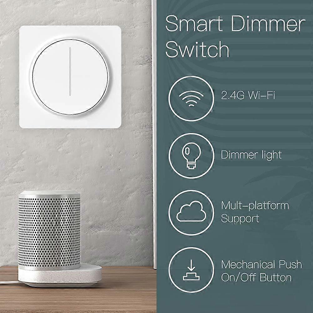 Dimmable Bulb Only:This smart dimmer switch only supprt dimmable LED/CFL 150W Max, and INCANDESCENT 300W Max. Please confirm your bulb's specification before placing order. It also works with 250W fan. Moving your finger to control fan speed. App Remote Control:Remote control lightings of your house via Smart Life app from anywhere at anytime. No hub required. Voice Control:The wifi dimmer switch works with and Home Assistant to conveniently control the light with simple voice when you are on go. Timing Function:Create schedules to automatically turn the light on with the preset brightness or off at specific times. Perfect to create different mood lights with specified brightness for your daily activities, bedtime or TV time, sunrise or sunset, etc. Diming&Memory Function:Adjust the light to a certain percentage by moving your finger up or down on the front and center of the switch, by Smart Life App or voice ; get the right light intensity while watching , reading, wearing makeup, etc. The switch remembers and turns back on to the last light setting when powered off. Group Control:You could set up a group for multiple dimmer switches in the app, then you be available to turn on/off the lights by one-tap. Plug Type:EU Plug,it applies to Indonesia, Germany, France, Spain, Italy and so on Specification Shell Material: UL94V0 Rated Current:7A Input Voltage: AC 100-240V Input Frequency: 50Hz/60Hz Max Load Power: LED/CFL:250W INCANDESCENT:300W Fan: 250W WIFI Standard: 802.11 b/g 2.4GHz Receive Sensitivity: -98dBm mit Power: 19dBm Standby Consumption: 1W Indicator Light: LED Colour:White Material:plastic Size:86x86x38.7mm Package Contents: 1* Dimmer Switches Only the above package content, other products are not included. Note: Light and different displays may cause the color of the item in the picture a little different from the real thing. The measurement allowed error is +/- 1-3cm.