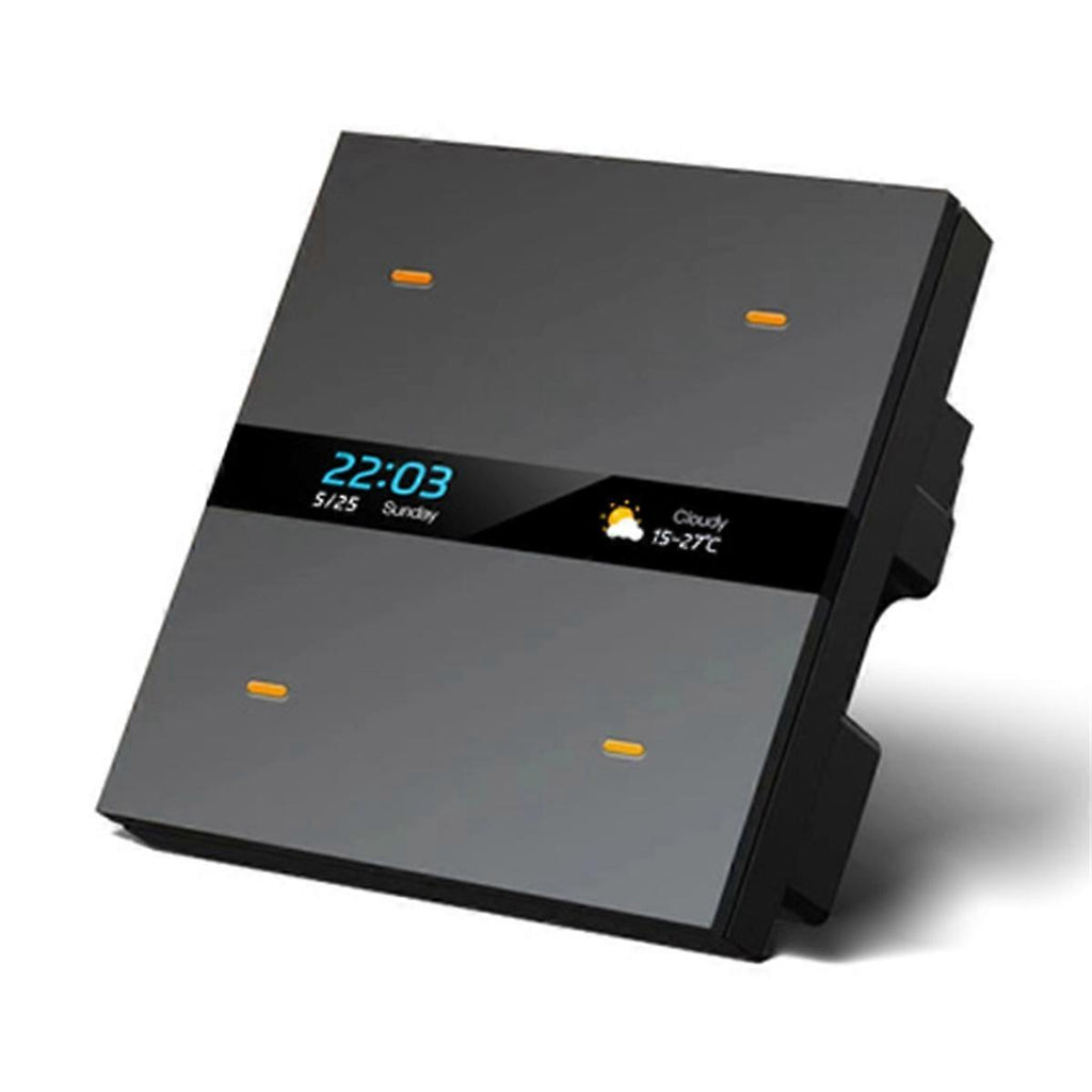 86 In-wall concealed structure, easy installation mode, no need to remodel the wall, any match. Smart home interconnection, scenario mode, device automation, remote APP control. You can easily achieve touch on the lights, curtains, air conditioning, and other intelligent equipment precision control, no hands, compatible with some of the graffiti ecological equipment. Custom linkage scene, can quickly switch scene mode. 4-way composite switch, ordinary switch scene switch any switch. App to modify the switch or scene name, automatically synchronised to the switch LCD display.80 * 160 resolution. calendar, weather information screensaver function. Millimetre wave human body sensing radar. support power-on, power-off memory. support zigbee wireless connection. 485: can support external input control, also can output control external intelligent devices. (Customisation required) Colour: A: Gray Material:ABS+PC Package Contents: 1 x Tuya Zigbee Smart Scene Switch Only the above package content, other products are not included. Note: Light reflection and different displays may cause the color of the item in the picture a little different from the real thing. The measurement allowed error is +/- 1-3cm.