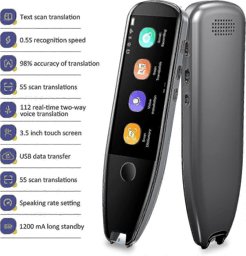 [Text-to-Speech] Scan translator pen can scan 3000 characters per minute, scan and translate the entire line of text within one second, and output the original text and translated documents by voice. The accuracy rate is up to 98%, which is convenient and fast Very suitable for people with dyslexia and poor eyesight. [112 Languages Voice Translator] Voice translator supports online scan translation in 55 languages and real-time voice translation in 112 languages. Supports multinational accents and can adjust the speed of speech output. It is the best choice for you to take notes, record conferences, travel abroad, take LELTS exams and give gifts. [Smart Recording & File Transfer] Translator Voice Translator can be used as a handy recorder to record and save all your important interviews, meetings and conversations. At the same time, it also supports converting Chinese, Japanese and English (new languages that are constantly being developed) records into editable documents. The text can be transferred to PC, notebook, MAC via USB cable. [Chinese-English Electronic Dictionary & Offline Translation] Even when there is no internet, the scan translator pen supports offline scan translation (currently only supports Chinese-English-Japanese). The powerful Chinese-English electronic dictionary function is your best choice for learning English. Large capacity battery supports up to 8 hours of continuous work and 7 days of standby time